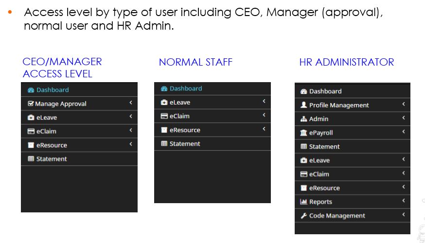 Our Human Resource Management System (HRMS) is a web-based open source solution that enable an organization to operate on their day-to-day activities more affective and affection. The HRMS has an Employee Self-Service (ESS) features that allow staff to perform all the important online request that require approval at the various levels.
