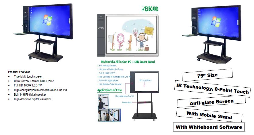 SmartBoard Interactive Touchscreen whiteboard system 75” Inch
