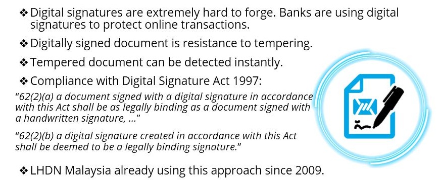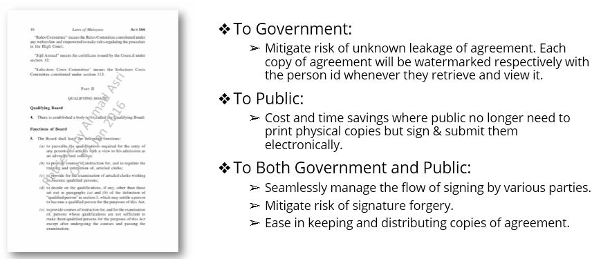 e-Agreement is to totally make away Paper Agreement, where all signing and stamping are done electronically using Digital Signature.